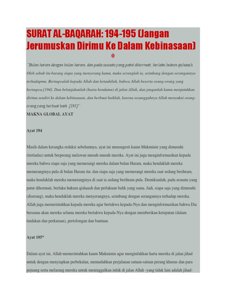 Surah ini terdiri dari 286 ayat dan tergolong surah madaniyah karena diturunkan di kota madinah. Read and learn surah baqarah 2:195 to get allah's blessings. With our al quran explorer feature, just with a tap you can select the surah you want to. Menyampaikan kepada para malaikat bahwa allah swt. Baca surat al baqarah lengkap bacaan arab, latin & terjemah indonesia. Pada ayat 195 allah ta'ala memerintahkan kepada mereka menginfaqkan hartanya untuk jihad fi sabilillah, mempersiapkan lainnya: Listen surah baqarah audio mp3 al quran on islamicfinder. Ayat 23 وَإِنْ كُنْتُمْ فِي رَيْبٍ مِمَّا نَزَّلْنَا عَلَىٰ عَبْدِنَا فَأْتُوا بِسُورَةٍ مِنْ مِثْلِهِ وَادْعُوا شُهَدَاءَكُمْ مِنْ دُونِ اللَّهِ إِنْ كُنْتُمْ صَادِقِينَ. 'to spend in the way of allah' signifies financial sacrifice in order to establish god's religion. Islamicfinder brings al quran to you making holy quran recitation a whole lot easier. Terjemahan perkata per kata, tafsir ~ audio reciter. Berikut kami berikan link download surat al baqarah full mp3 dari qari timur tengah dan qari indonesia, kami berikan juga link per ayat dan ayat pilihan. Chapter of qur'an surah baqarah is a medinan surah and titled the cow because of ayat 67 which makes mention of a cow.